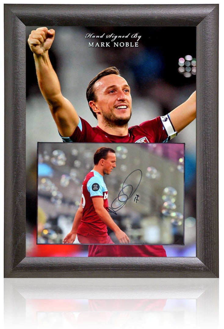 A superb presentation of Mr.West Ham and legendary club captain, Mark Noble, which includes a hand-signed 12x8" photograph displayed in a 16x12" graphic mountboard.