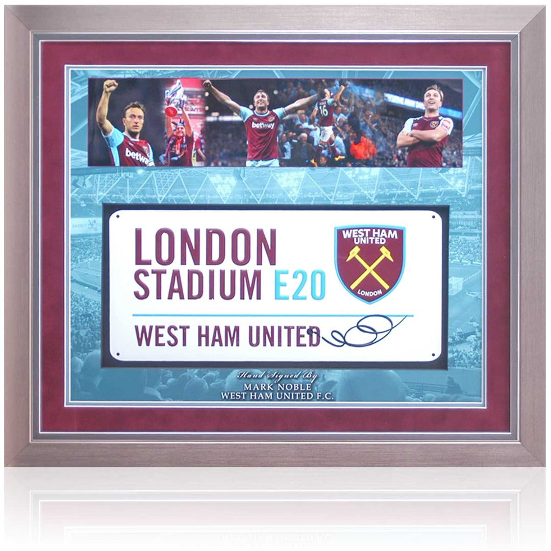 Celebrate the career of West Ham United legend and club captain Mark Noble with this fantastic framed presentation, featuring an London Stadium street sign hand-signed by Mr. West Ham himself. This unique piece is complemented by a photomontage of Noble in action, creating a striking tribute to one of the club’s all-time greats.