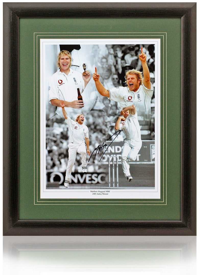 Fantastic 16x12" montage hand signed by 2005 Ashes Winner, Matthew Hoggard.