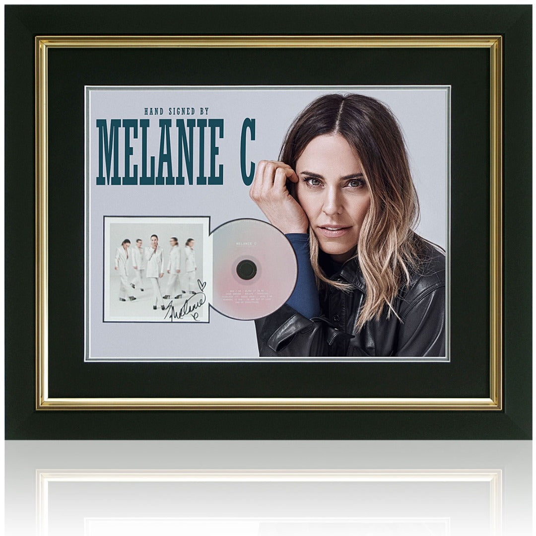 Stunning album cover of Melanie C's 2020 self-titled which has been hand-signed by the former Spice Girl. This signed CD Cover has been mounted into a large picture of Melanie and comes double recess mounted in black and silver artboard and comes presented in a gold detailed gallery frame measures 57x68cm. Comes with a Certificate of Authenticity issued by AFTAL members British Sports Museum.
