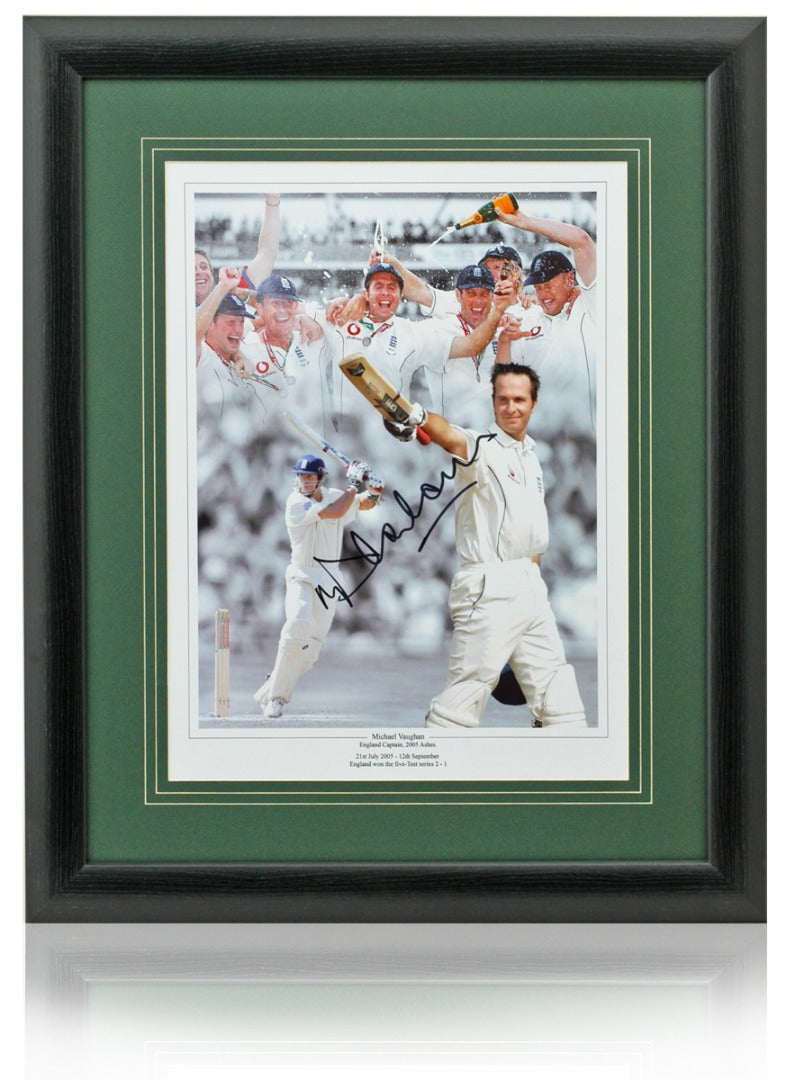 Stunning 16x12” 2005 Ashes montage hand signed by England Cricket Captain, Michael Vaughn OBE.