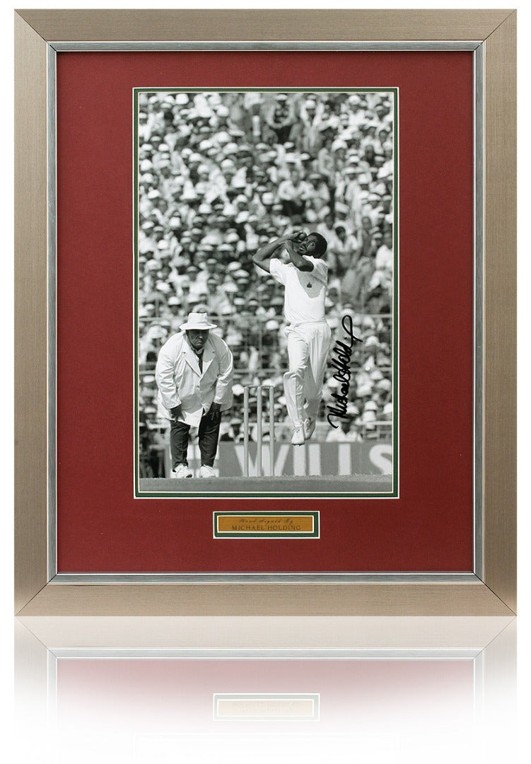 Beautifully presented 16x12" photograph hand-signed by the man nicknamed Whispering Death, cricket legend, Mike Holding.