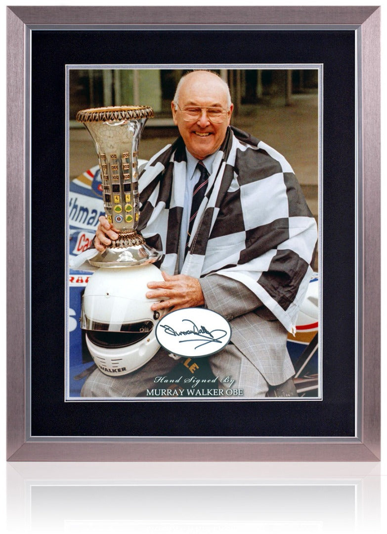 Incredible photo presentation of British commentating legend, Murray Walker, hand-signed by the voice of Formula One.