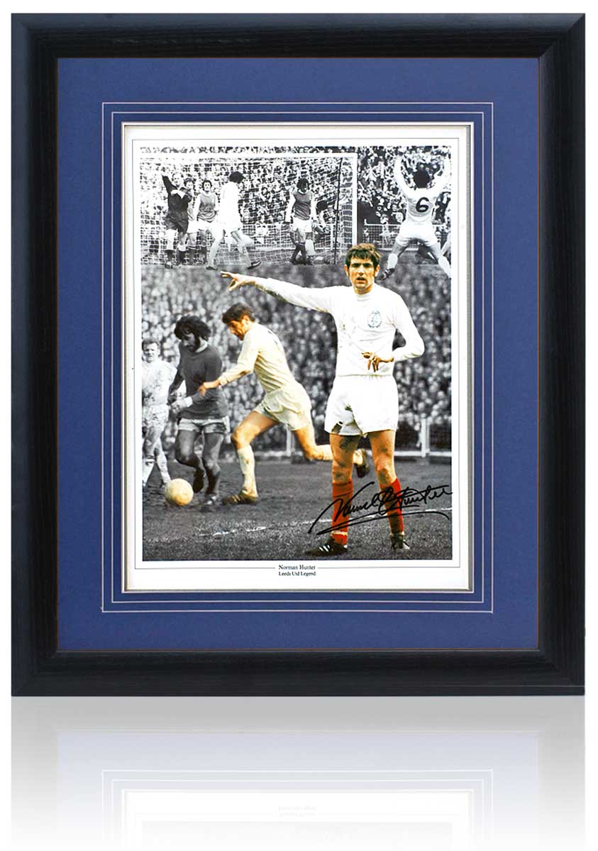 Fantastic 16x12" photographic montage hand signed by Leeds United legend, Norman Hunter.