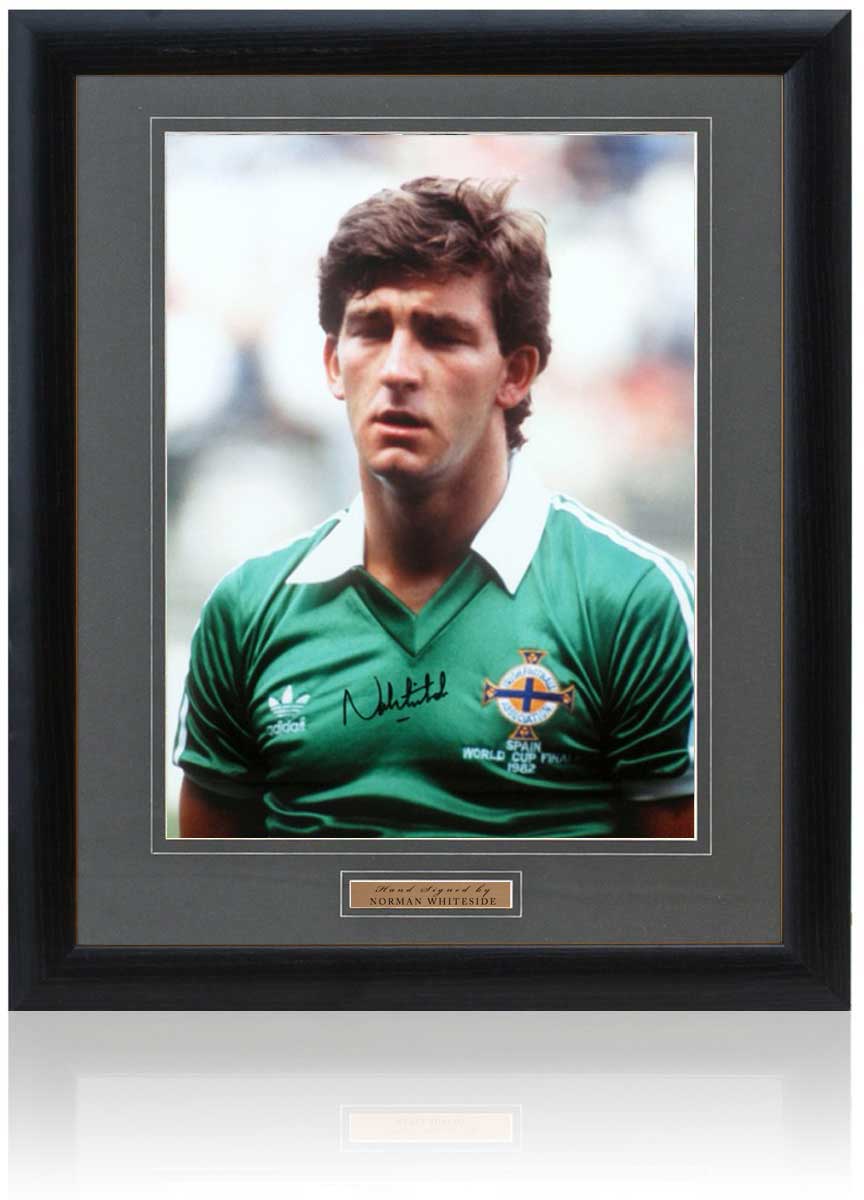 Fantastic 16x12" photograph hand-signed by Northern Ireland legend, Norman Whiteside.