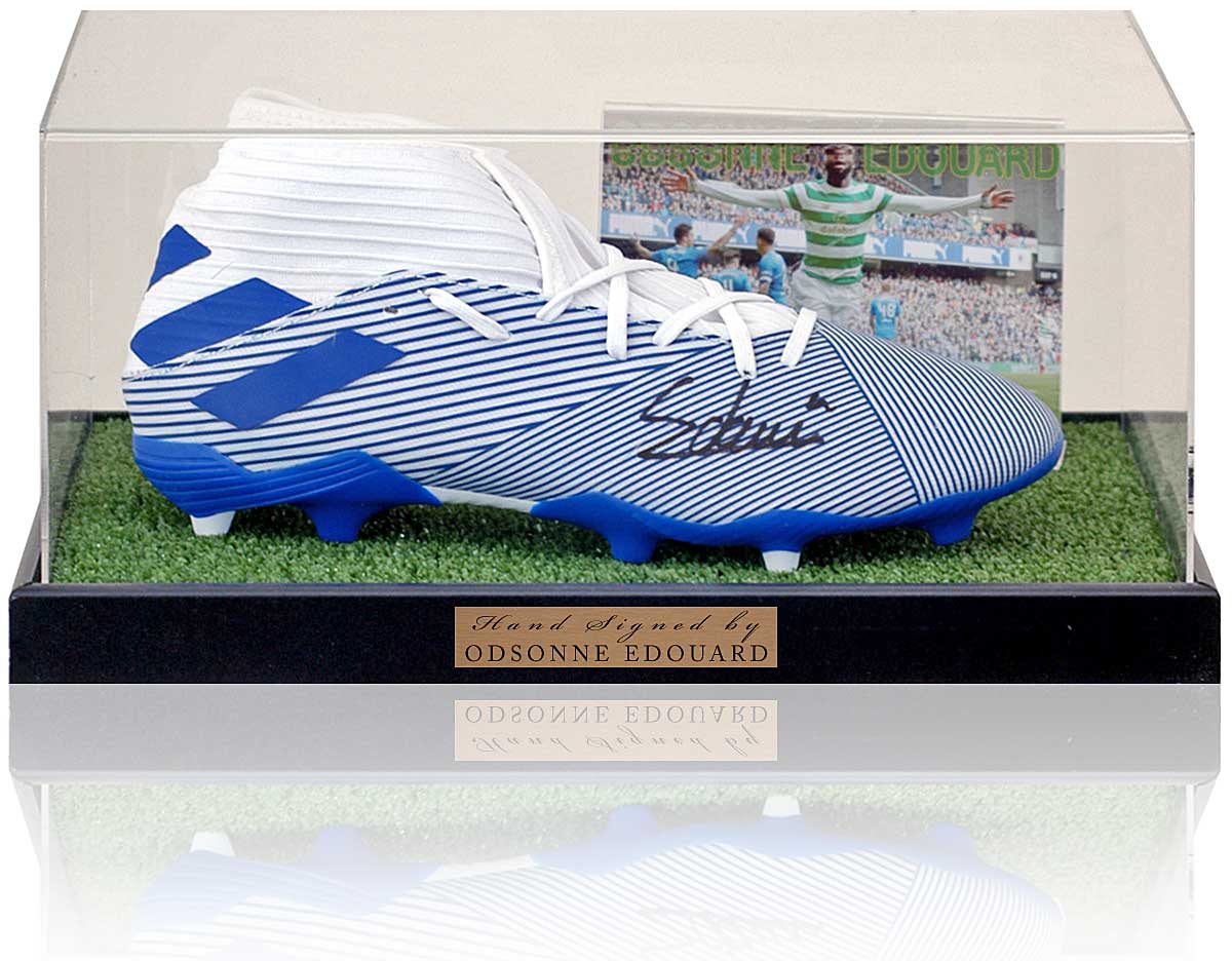 Fantastic football boot hand-signed by Celtic striker Odsonne Édouard, who scored an impressive 57 goals in 94 appearances winning back-to-back domestic trebles at his time with The Hoops.