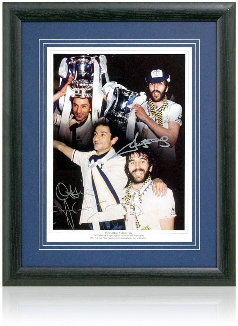 Fantastic 16x12" photomontage hand-signed by Tottenham Hotspur legendary Argentine duo, Ossie Ardiles, and Ricky Villa.