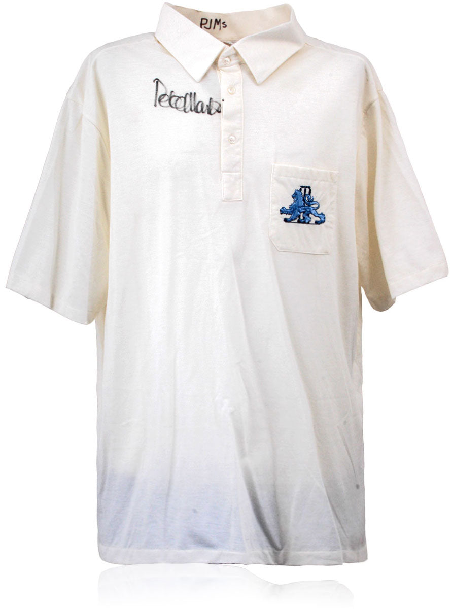 A superb piece of cricket memorabilia, this England cricket shirt has been match-worn by Peter Martin and has been hand-signed by the England & Lancashire ccc bowler. This shirt was made by Pastel Clothing and features the TCCB logo which preceded the ECB. These shirts were only made for the players, back in the days when replica shirts were not produced.