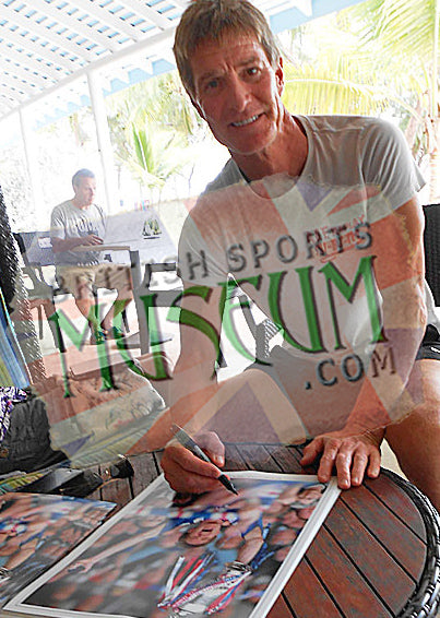 This amazing piece comes double mounted in blue and red artboard in a black wood frame measuring 23x19 inches. Comes with a photo proof certificate of authenticity issued by AFTAL members The British Sports Museum.com