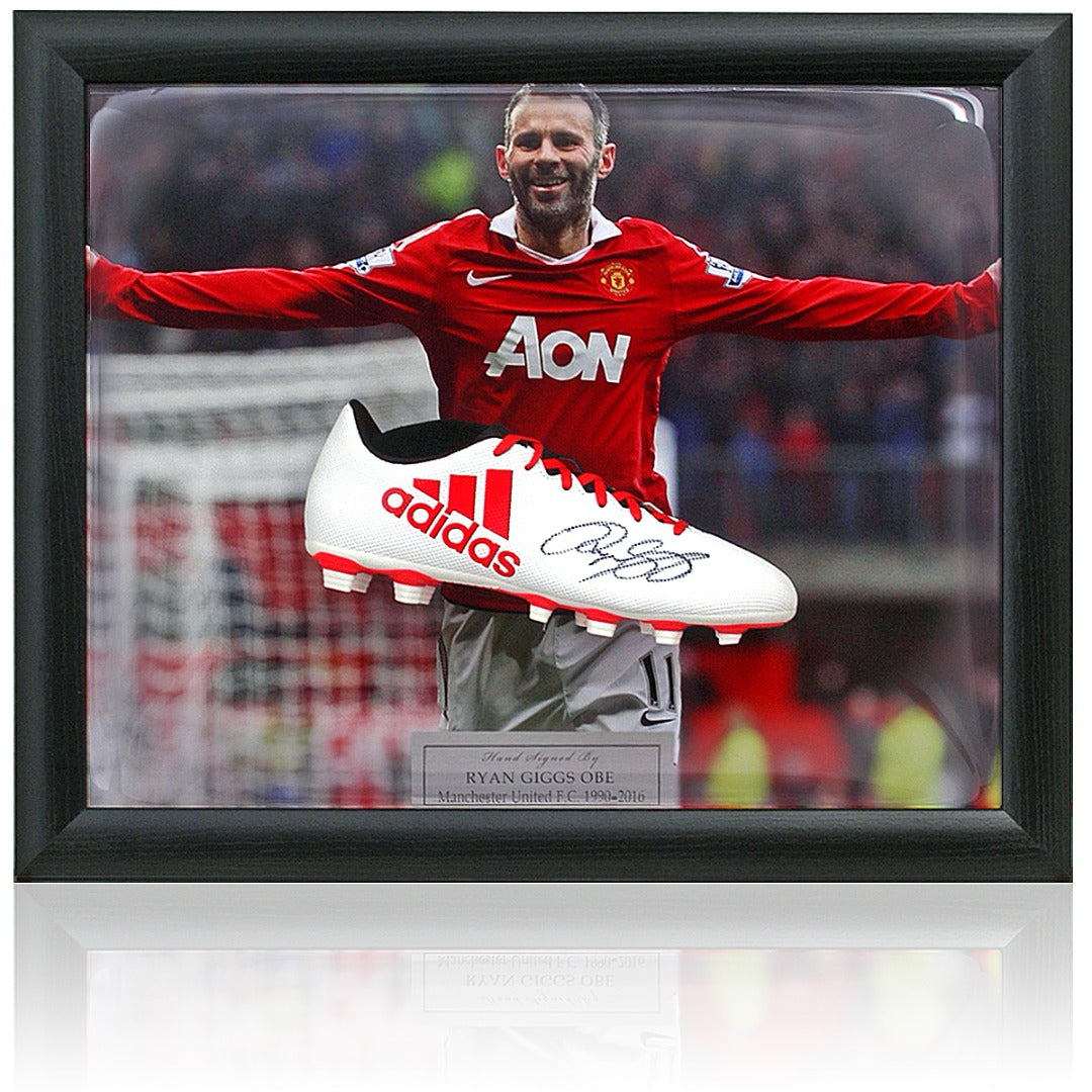 Fantastic domed football boot presentation hand signed by Manchester United's all-time leading appearance maker, Ryan Giggs OBE.