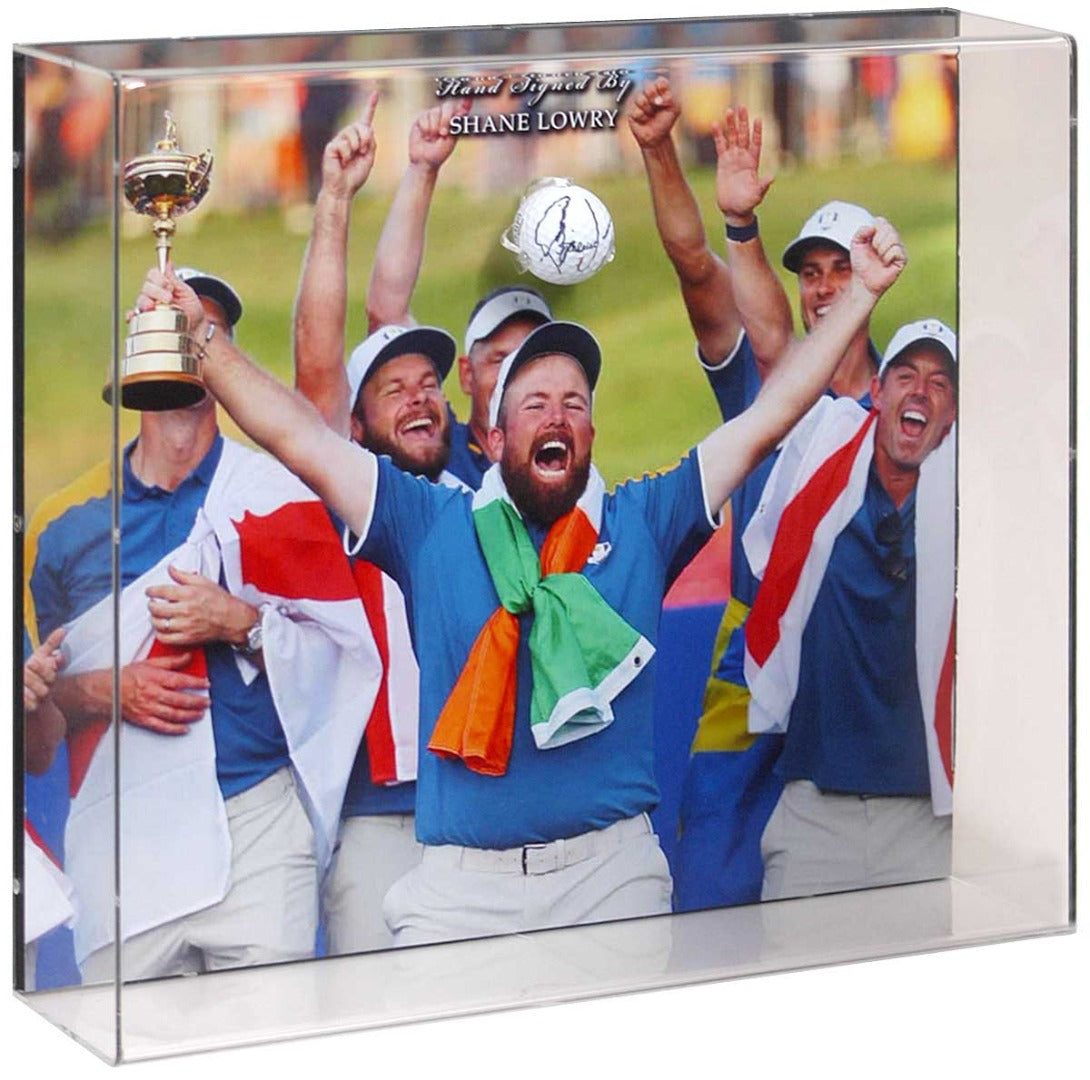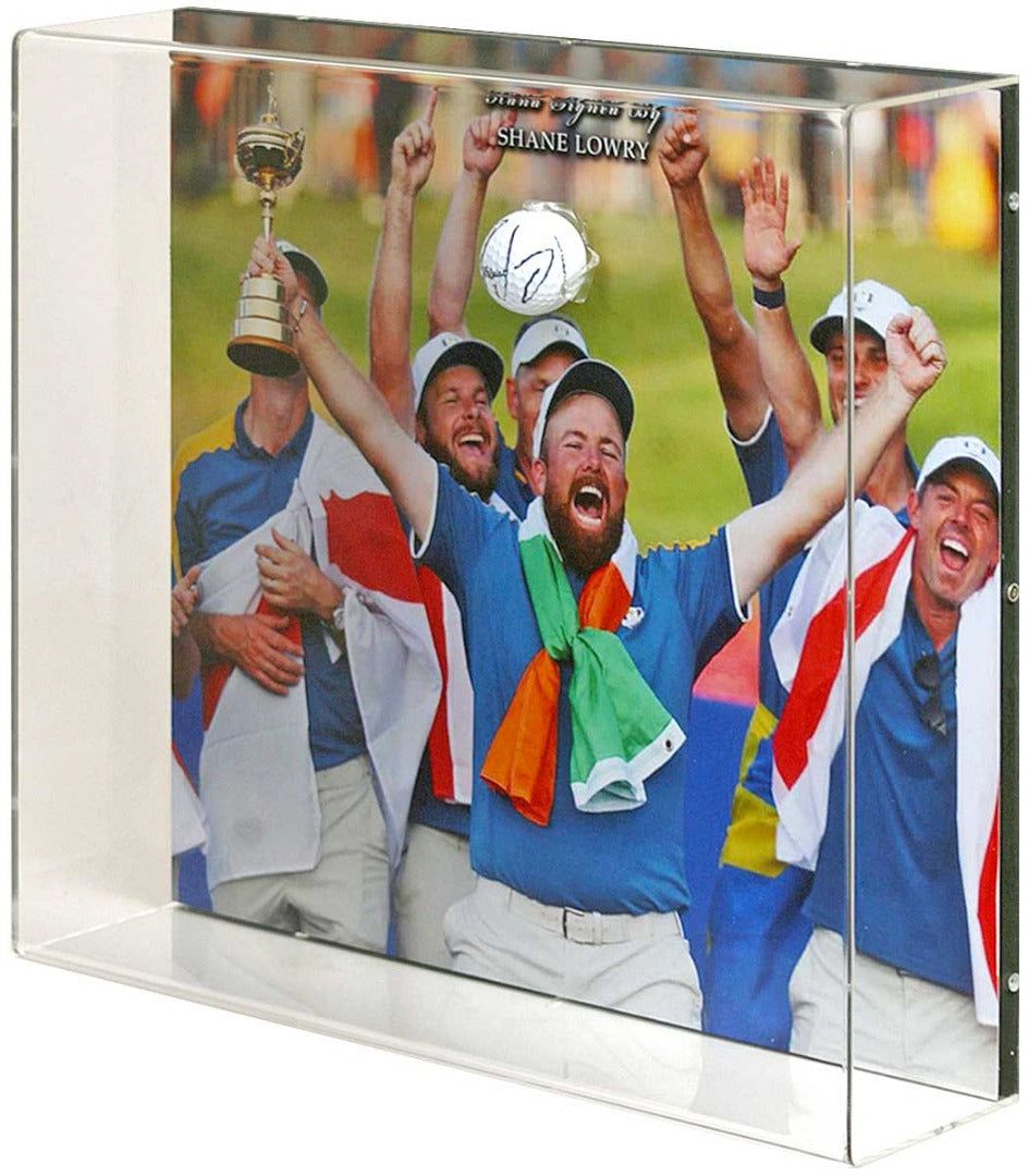 A superb acrylic framed presentation of a golf ball hand-signed by Europe Ryder Cuo 2023 winner, Shane Lowry.