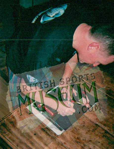 This brilliant piece of sporting memorabilia comes presented in a grey v-grove mountboard in a black wood gallery frame measuring 23x19 inches. The item comes with a photo-proof Certificate Of Authenticity issued by AFTAL Company British Sports Museum.