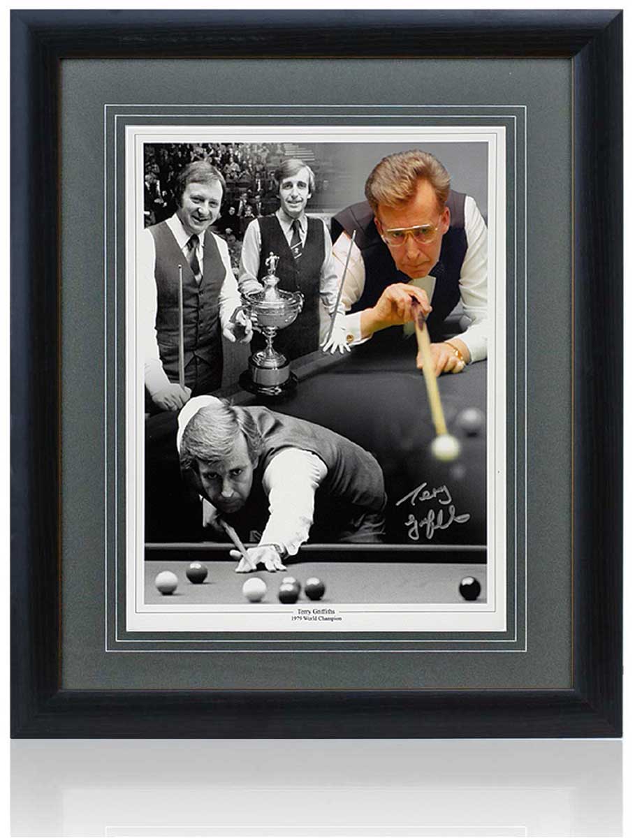 Fantastic 16x12" montage hand signed by legendary snooker player, Terry Griffiths.