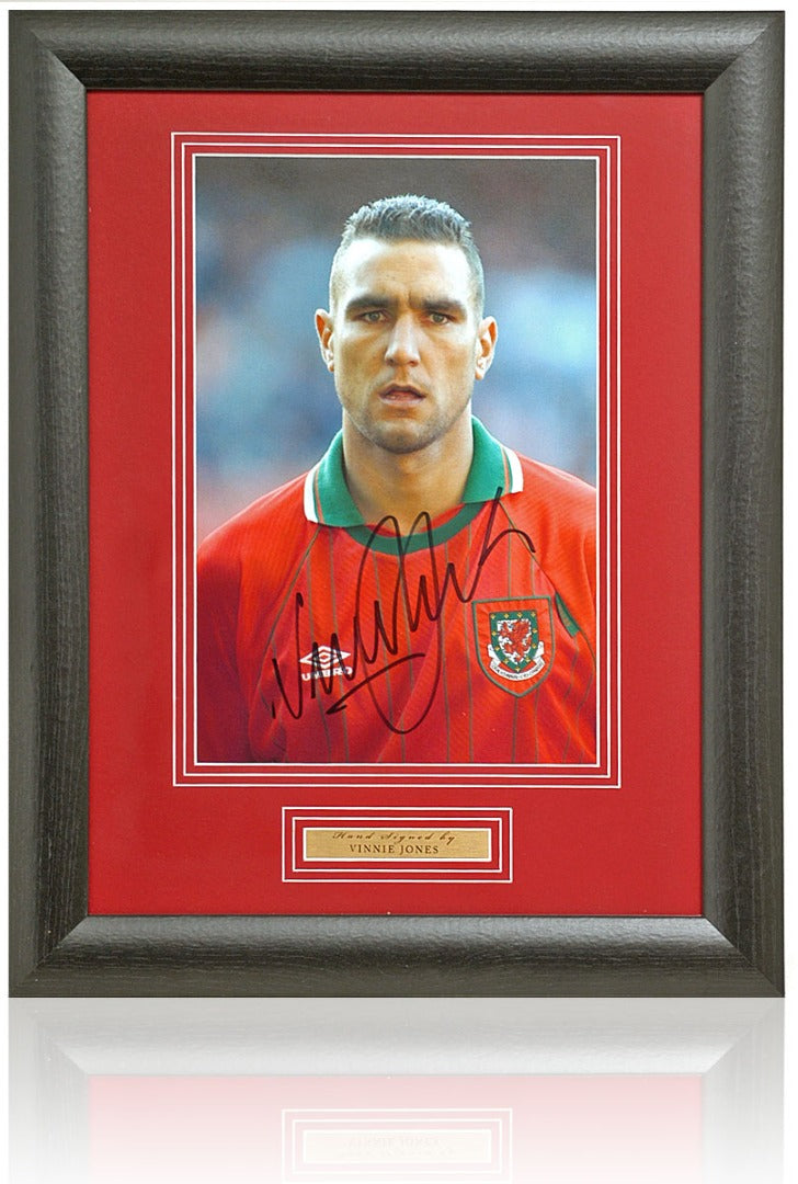 Vinnie Jones Hand Signed 12x8'' Framed Wales Football Photograph AFTAL COA
