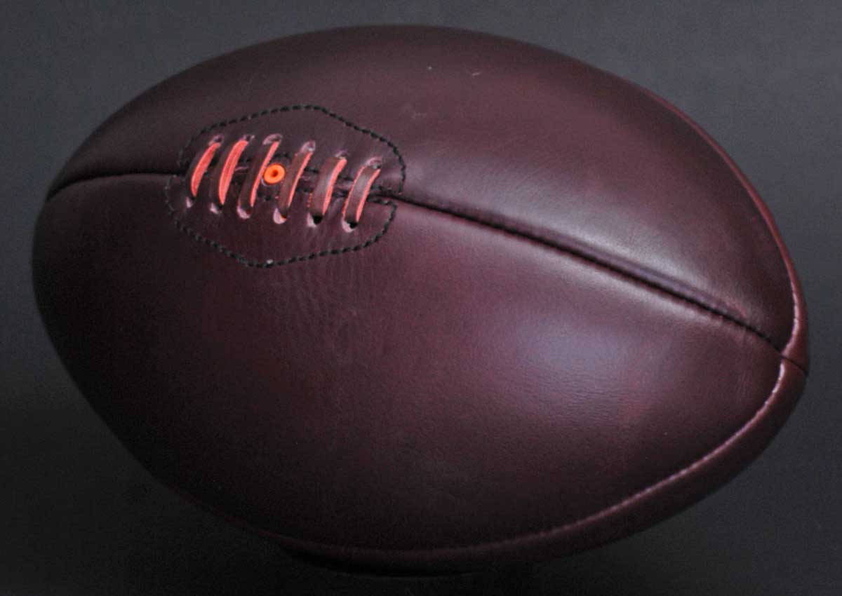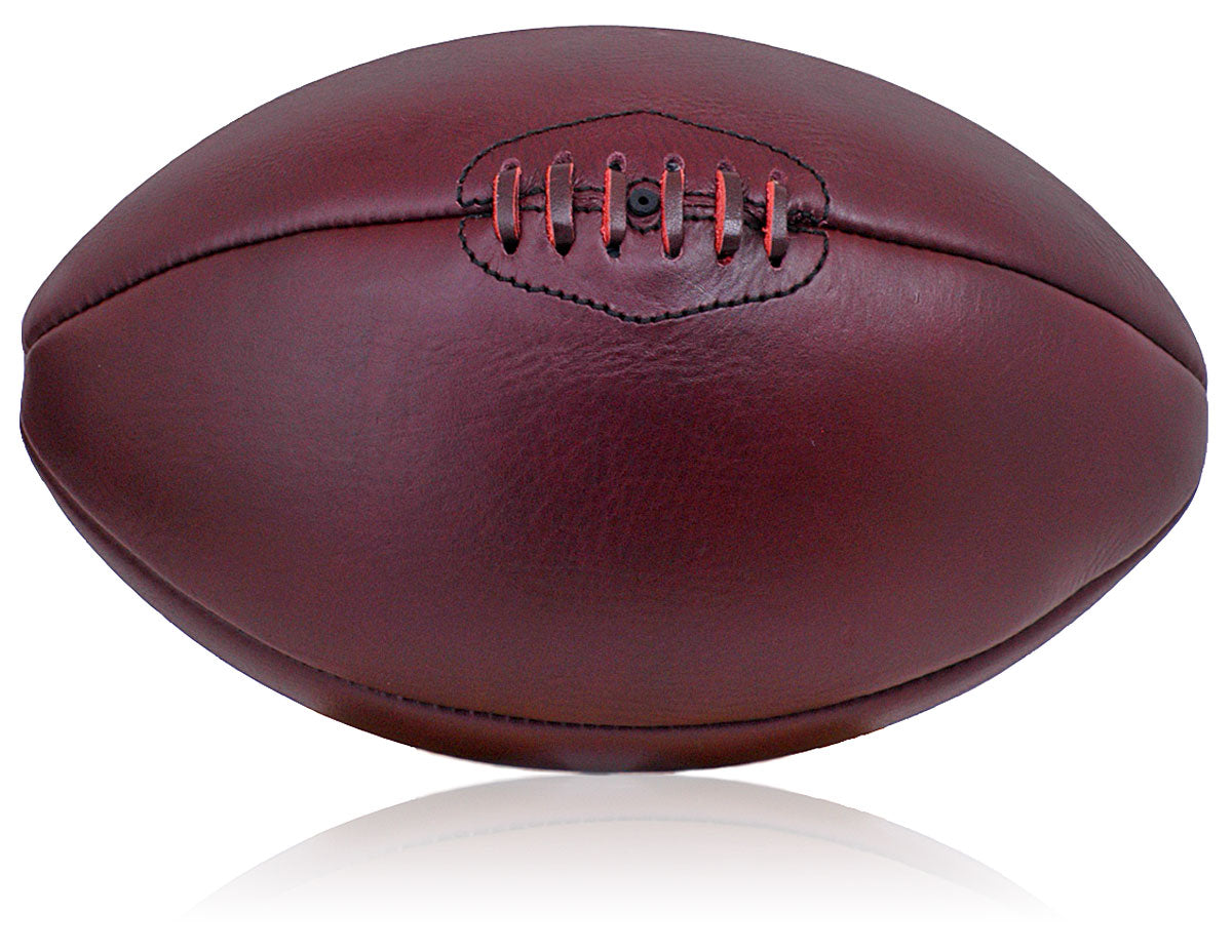 This stunning full-sized rugby ball embodies the classic 1950s design, crafted from 100% genuine leather with meticulous hand-stitching for a professional finish.