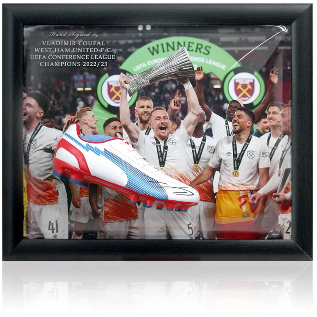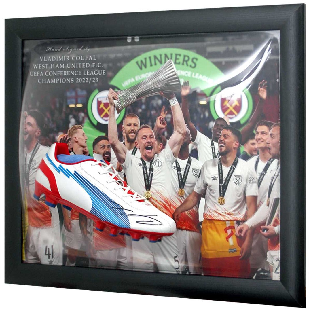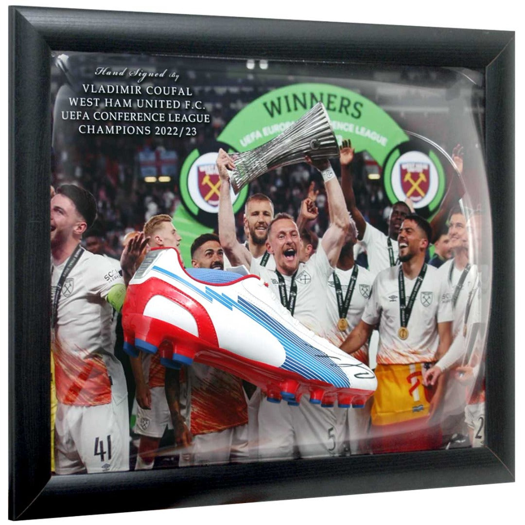 Amazing domed acrylic frame featuring a football boot hand signed by West Ham United Europa Conference League winning hero, Vladimir Coufal.