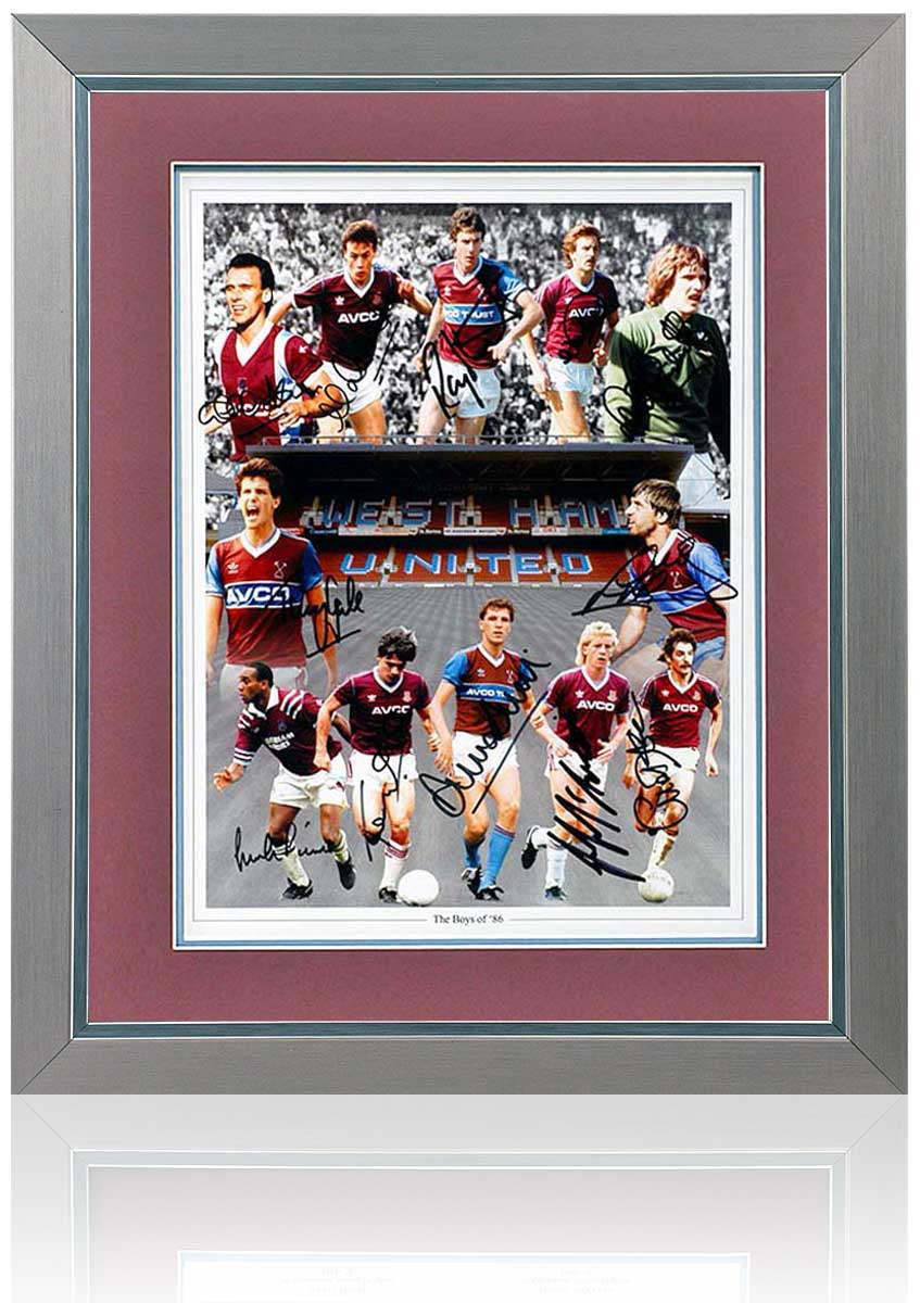 West Ham United Boys of 86 Hand Signed by 12 Legends Montage 23x19" Framed