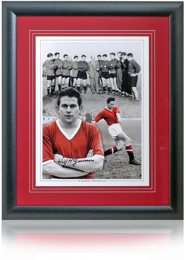 Fantastic 16x12" photo montage hand signed by Manchester United legend, Wilf McGuiness.